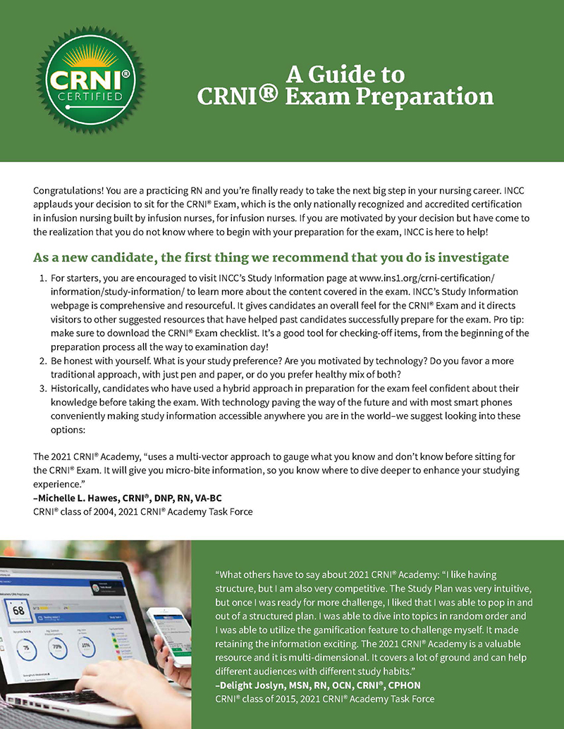 Follow the steps in this guide to prepare for the CRNI® Exam